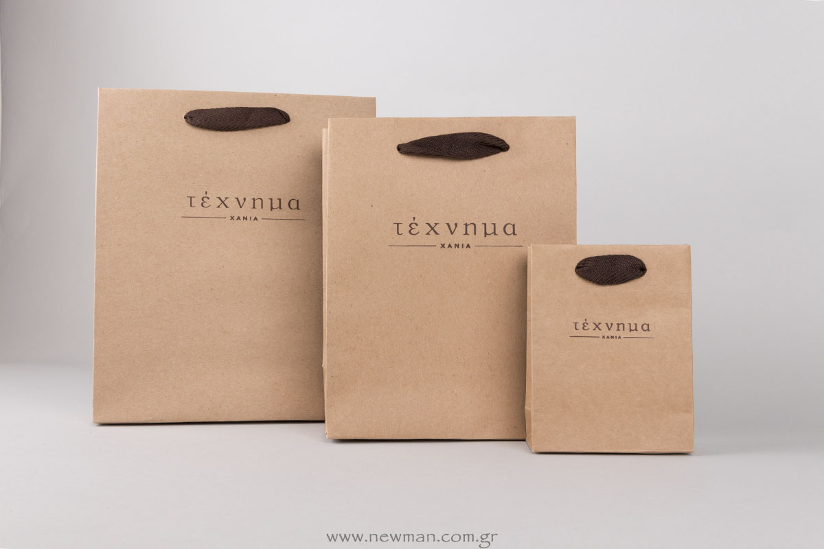 Luxury paper bags with cotton ribbons printed with silk screen printing